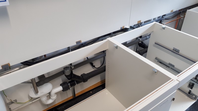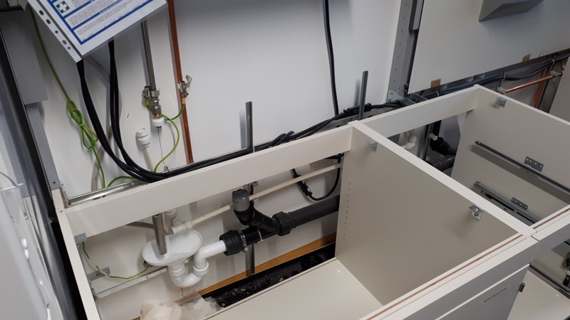 - Demontage alte Schränke und Umbau der Abluftanlagen,