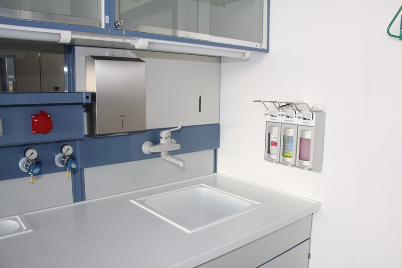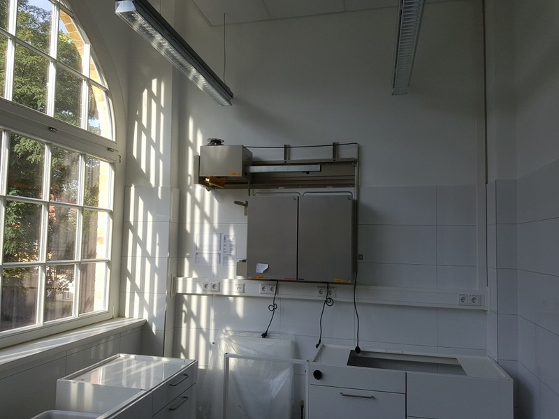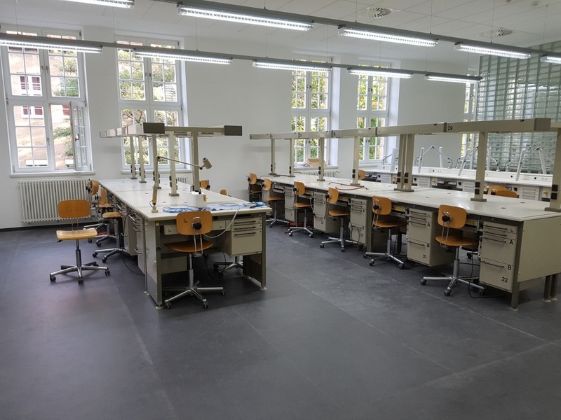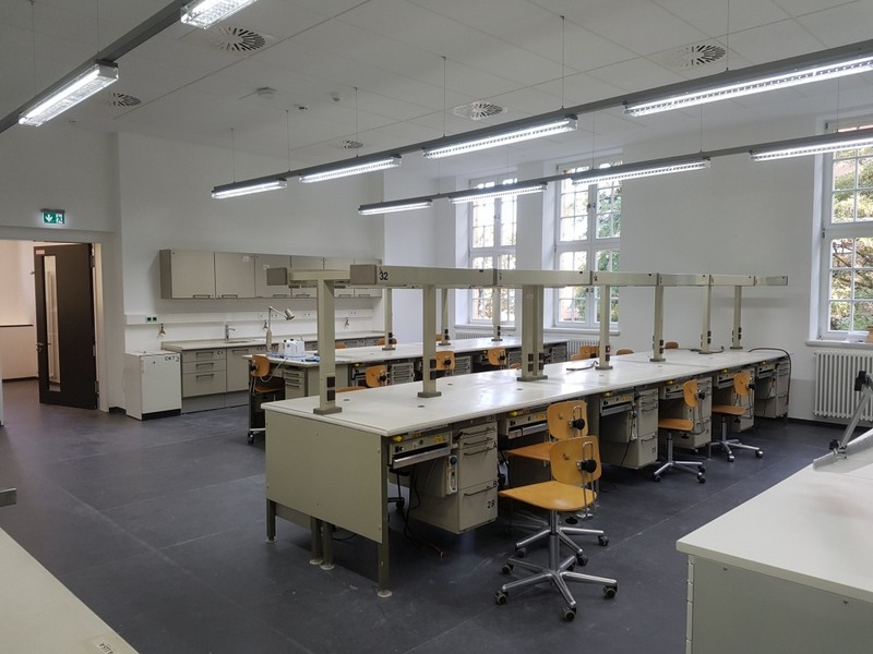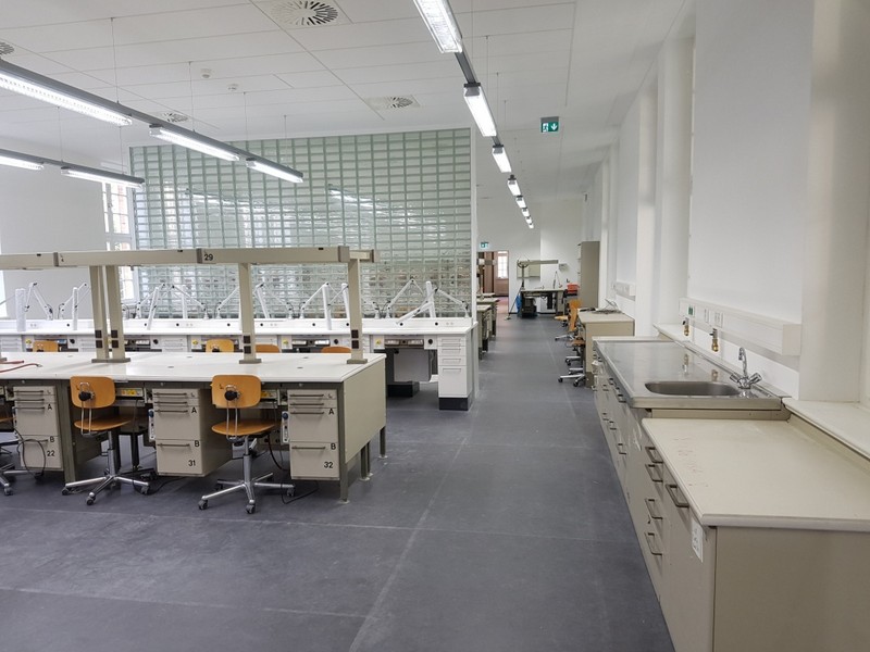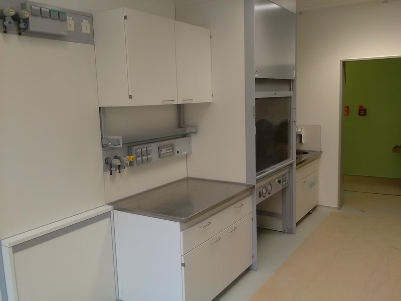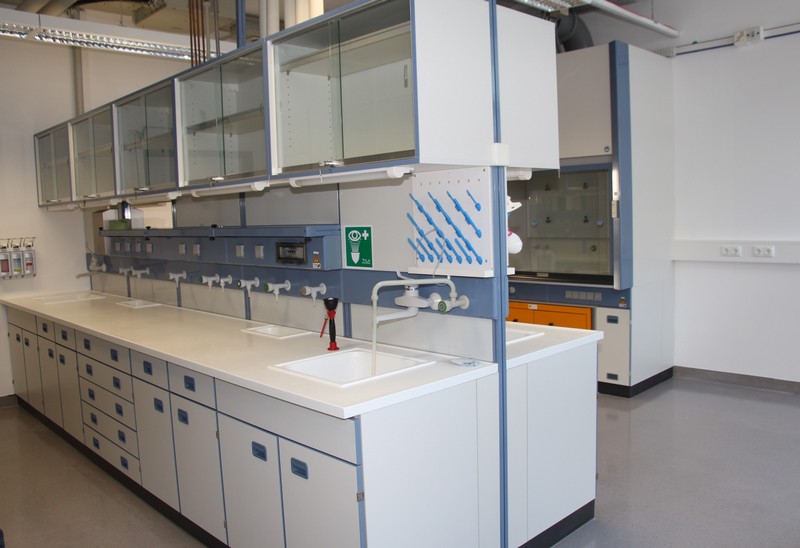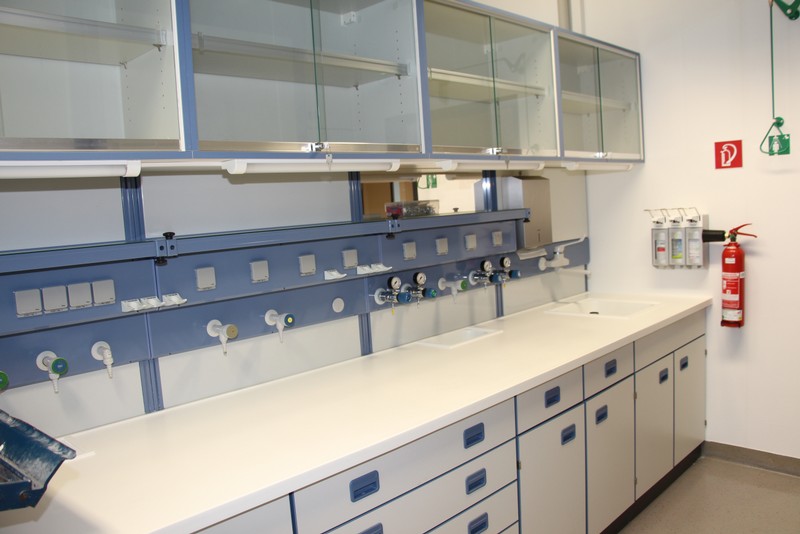 - bauliche Ergänzung mit Abzügen, Fensterarbeitstischen sowie Labortischen mit und ohne Medienversorgung in Sockel- und Gestellbauweise