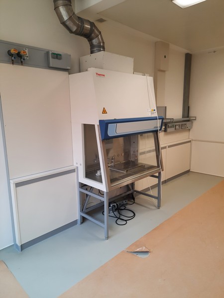 - Lieferung und Anschluss von 3 Sicherheitswerkbänken, 2 Autoklaven, 3 Kohlendioxyd Begasungsbrutschränken, 1 Eismaschine, 1 Gefahrstoffschrank, 1 Laborglasreinigungsautomat, 1 Reinwasseranlage, diverse Labormischarmaturen und Augenduschen